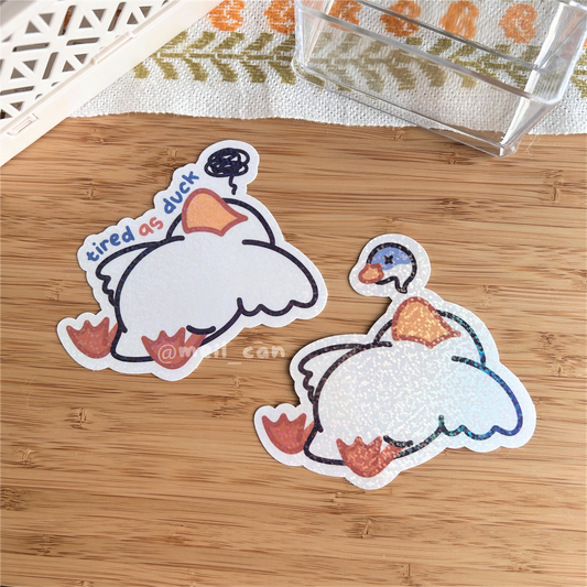 Tired as Duck - Duck Holographic Die Cut Sticker