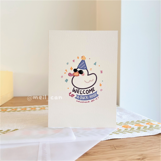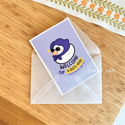 Welcome to A-Duck-Hood (White) - Duck Birthday Card - Greeting Card