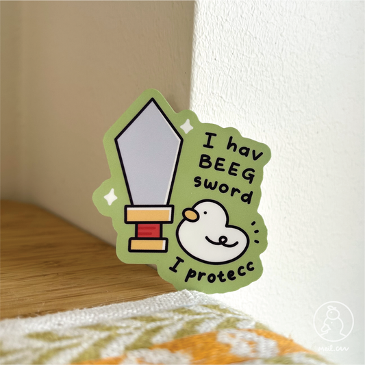 I Hav Beeg Sword, I Protecc - Matte Die Cut Sticker | Cute Sticker