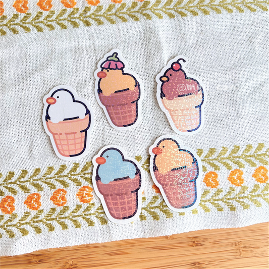 Ice Cream Duckies - Duck Holographic Die Cut Sticker
