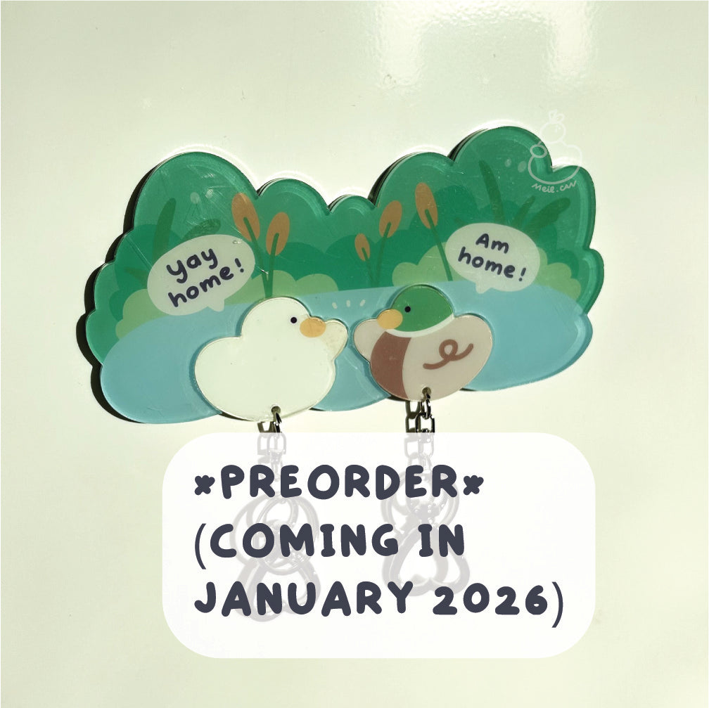 ☁ Double sided acrylic keychain. You can pull the duck from the holder & place them back easily since they have magnets in them.